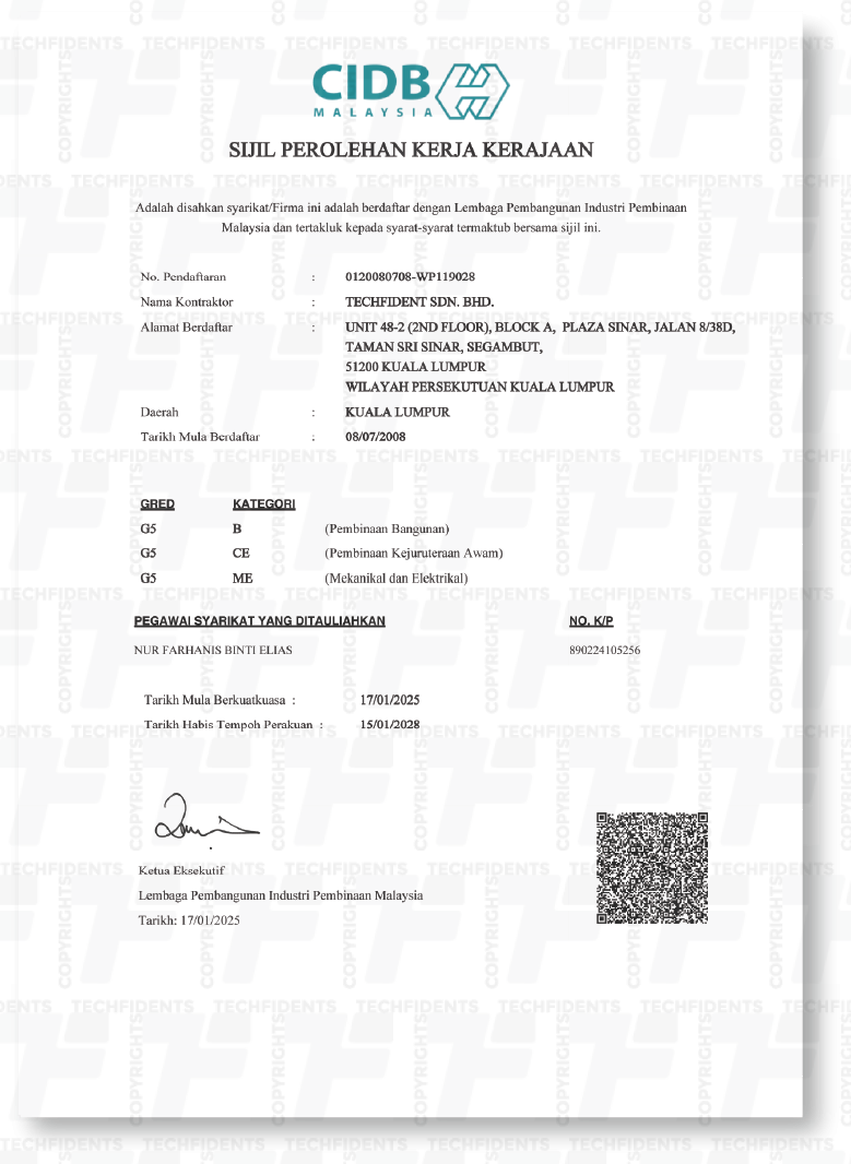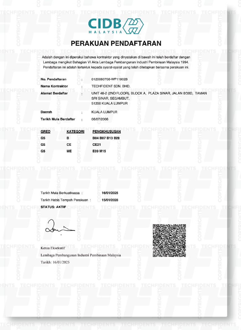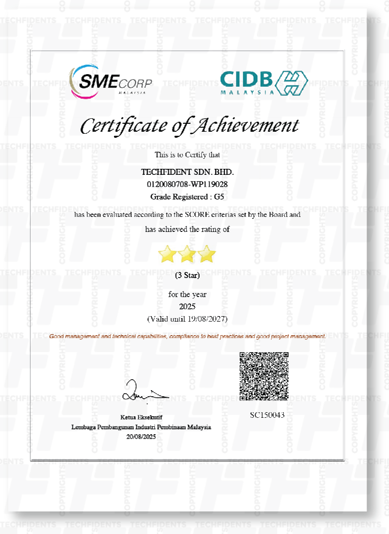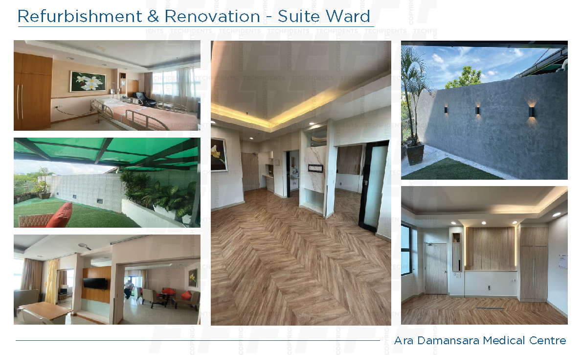 Techfident Sdn Bhd (TSB) was established in the year 2007 and its principal activities are refurbishment and renovation services for residential, commercial and industrial sector. Over the years TSB have completed numerous projects thus gaining clients confidence and valuable skills as well as experience in handling various types of projects. Later we have expanded and secure more specialized hospital critical environment projects and further develops a strong foundation as a renovation & refurbishment company.